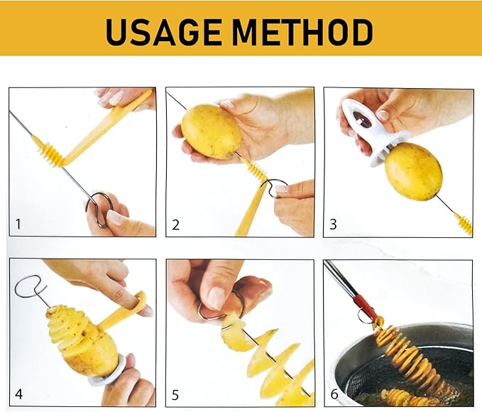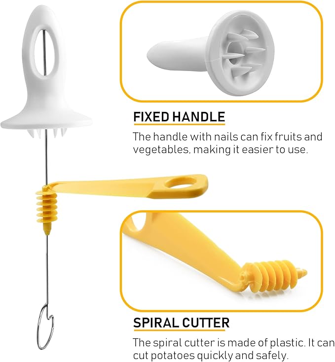 Easy to Use: Thread the spiral cutter onto a skewer, then insert the skewer through the potato. Secure the potato with the handle and spiral-cut. Manual operation ensures effortless use.